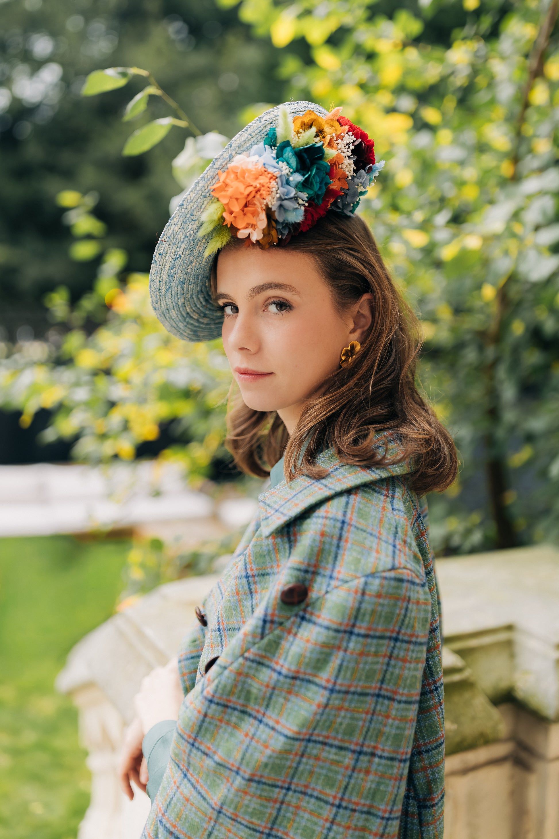 Découvrez Gismonda, un bibi élégant et raffiné, façonné à la main en paille bleue, où chaque détail reflète l’élégance et la poésie de la Belle Époque. Sa forme incurvée et son port légèrement incliné apportent un maintien discret et un port de tête gracieux, sublimant votre silhouette avec finesse. Sous le bord du bibi, un délicat décor de fleurs stabilisées vient enrichir la pièce, ajoutant légèreté, mouvement et raffinement.