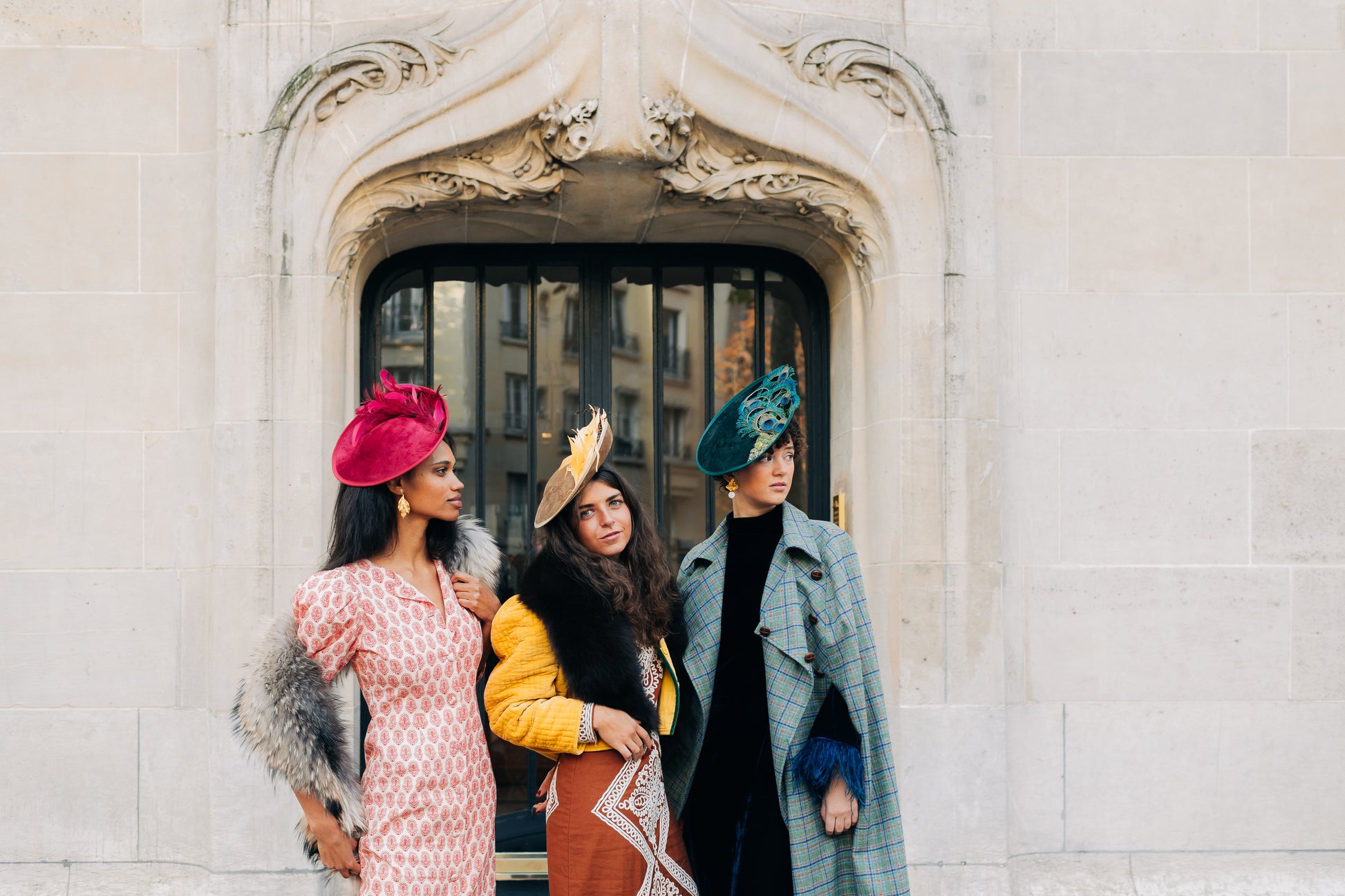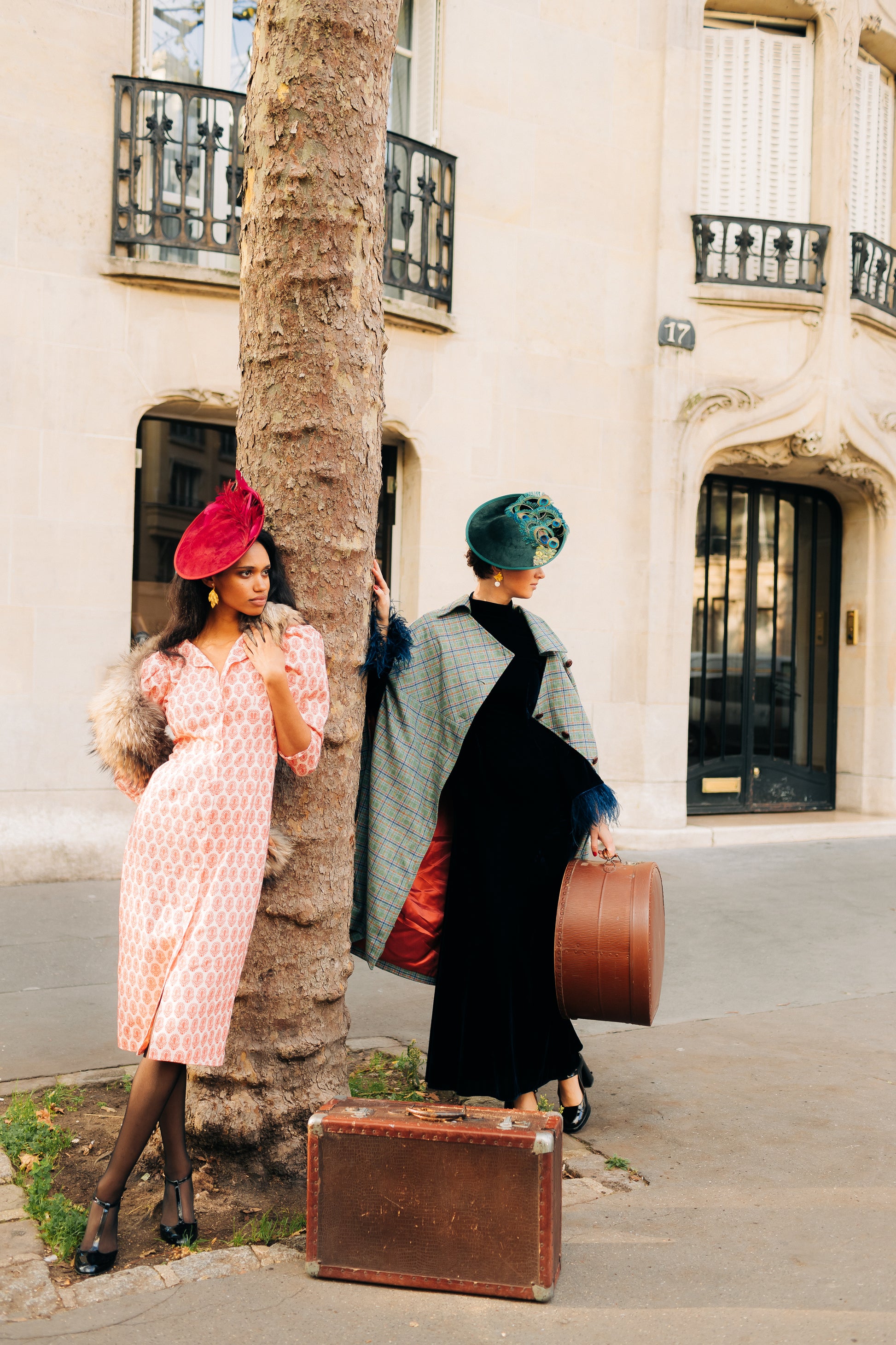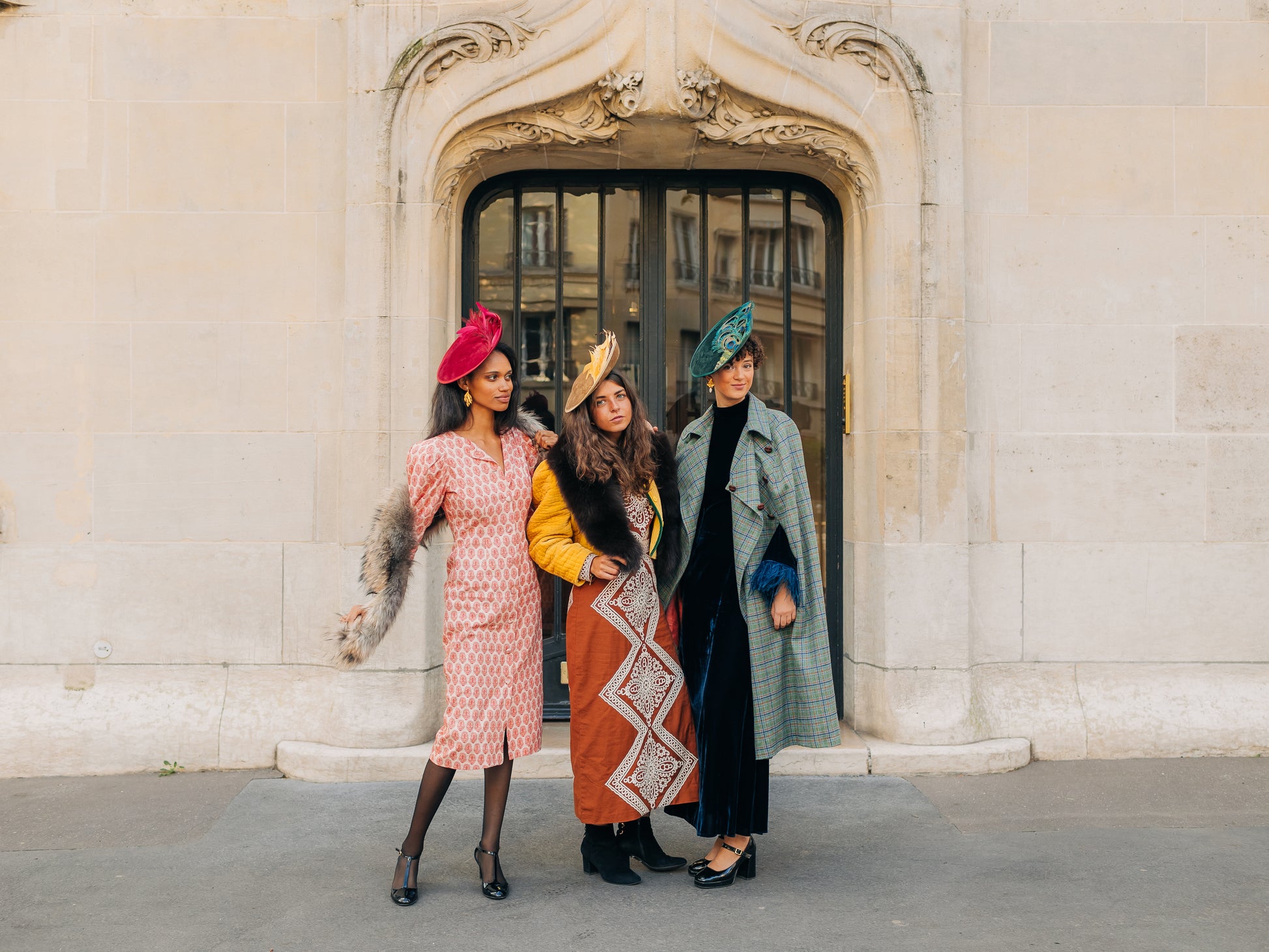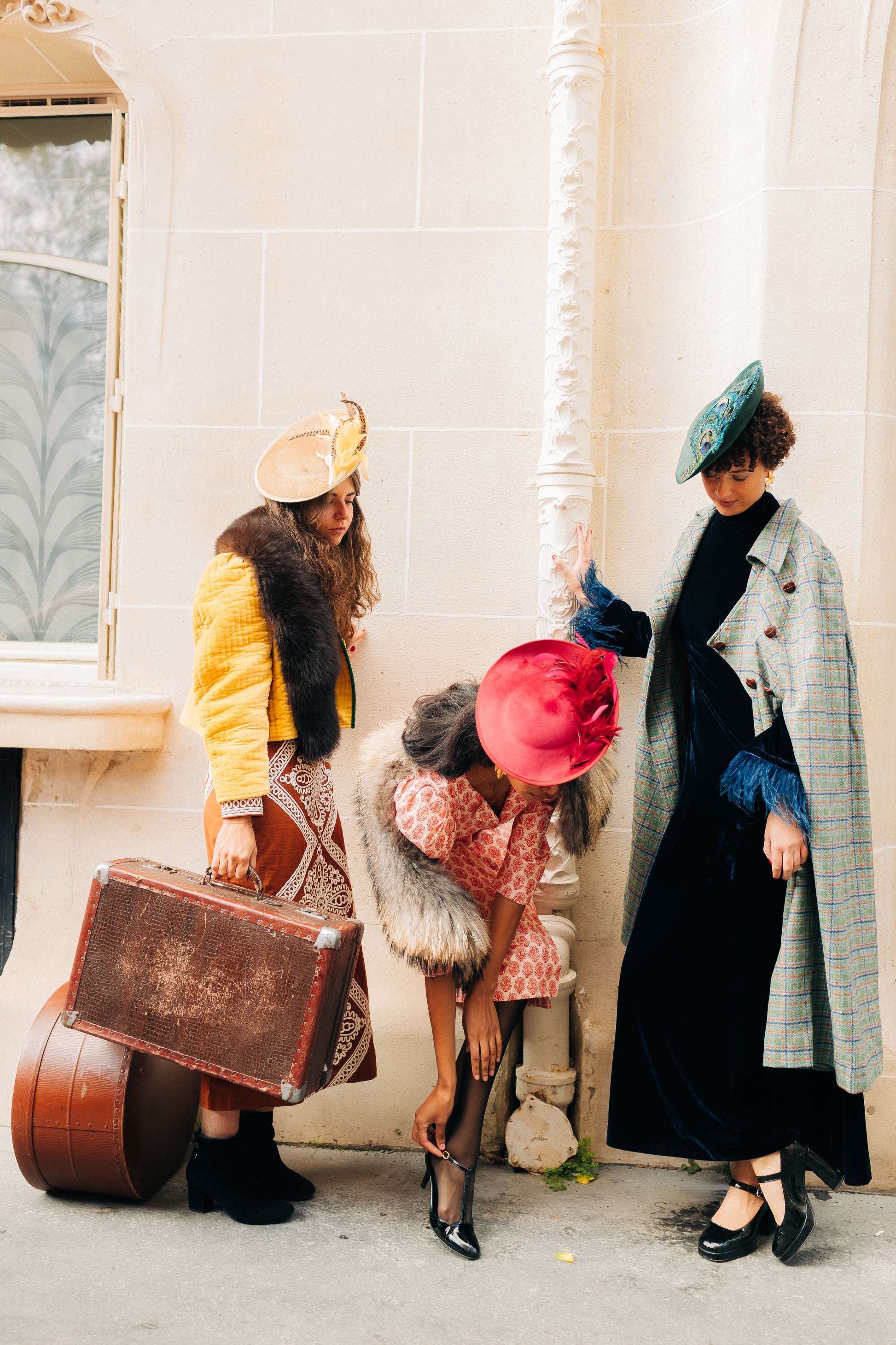 Des bibis en velours ornés de plumes, comme un écho aux bals du Moulin Rouge ou des Folies Bergère.