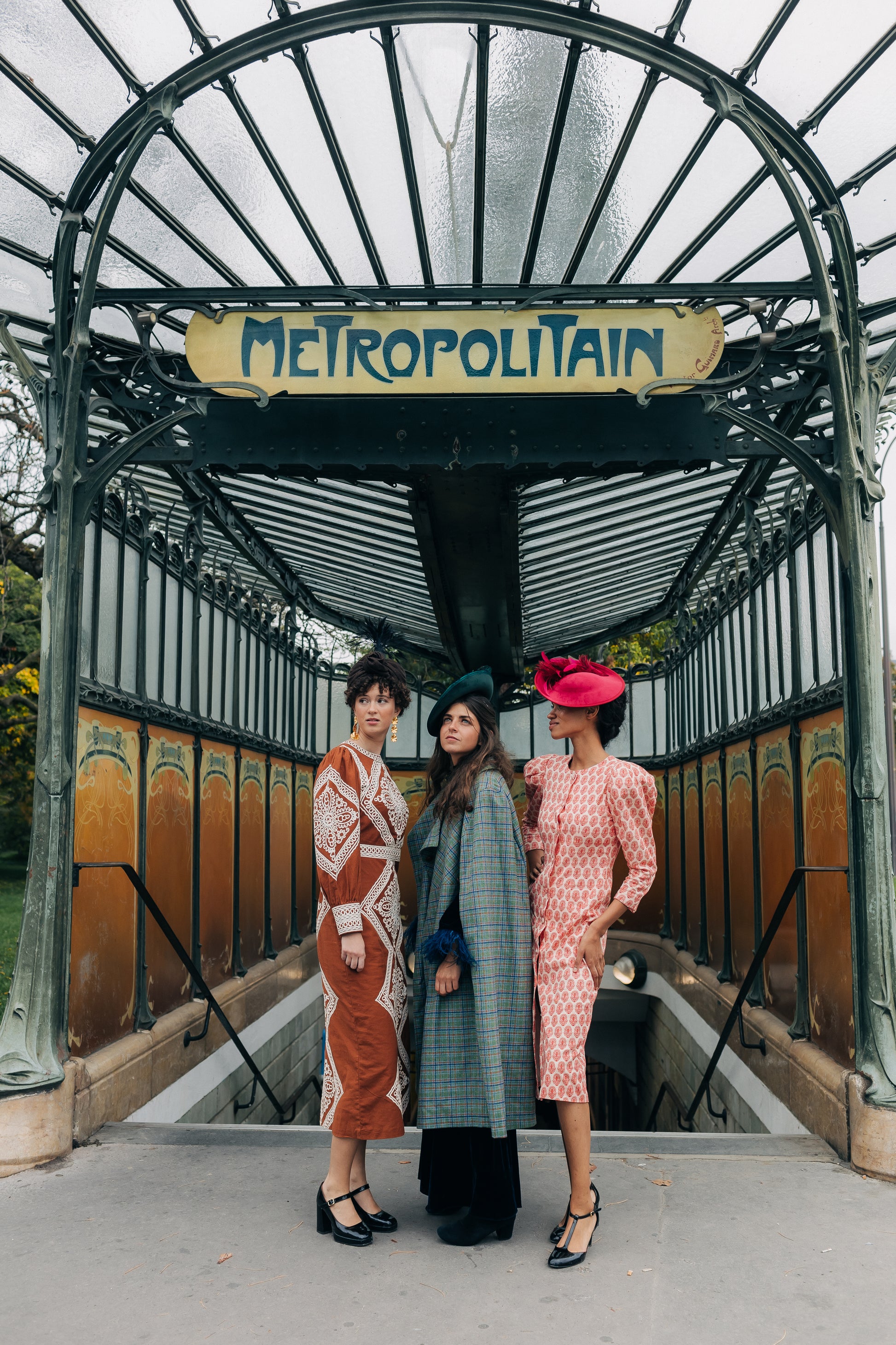 Les modèles sortent du métro Porte d’Orléans, comme surgies d’une autre époque, entre rêve et modernité.