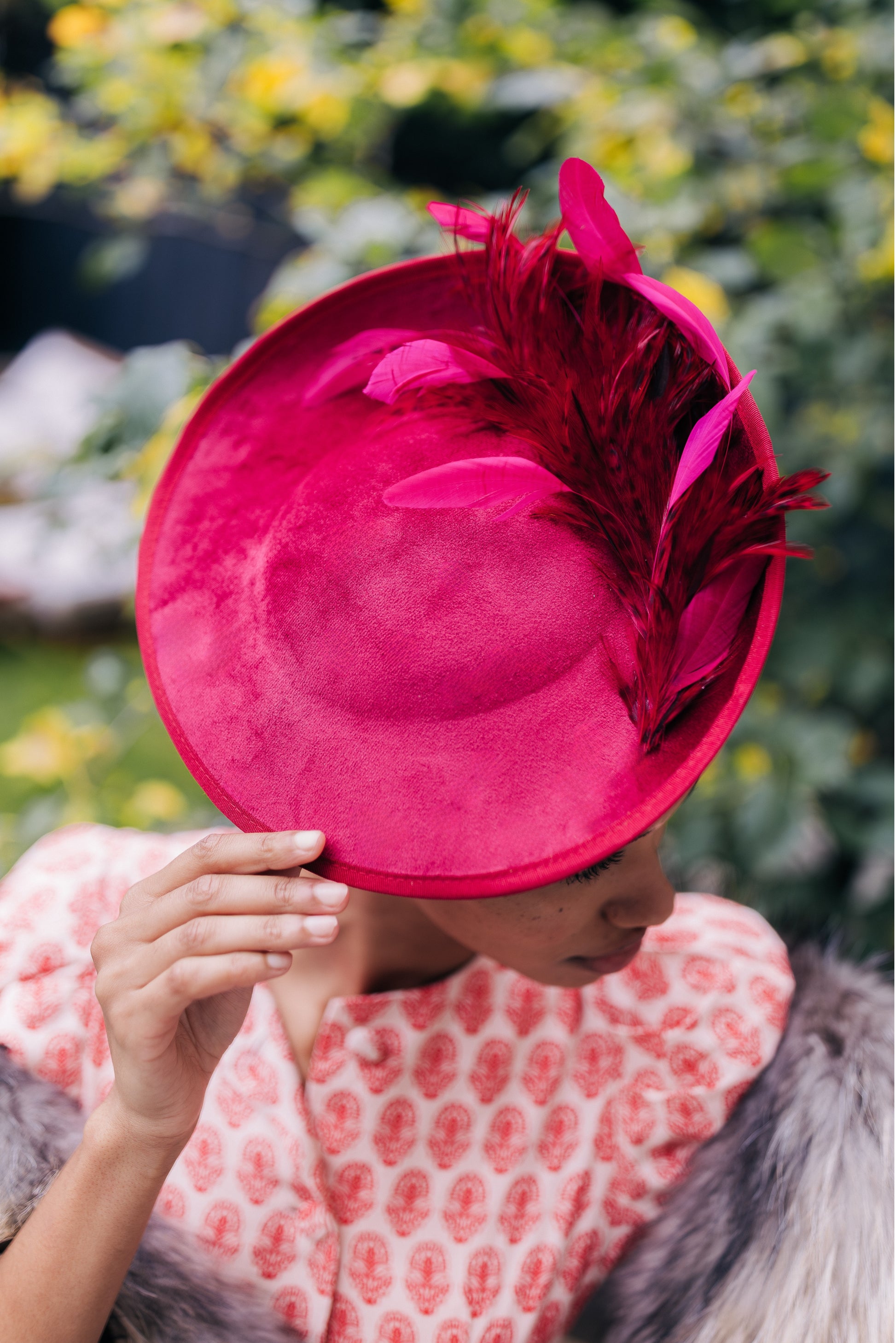 En raison de la nature unique et artisanale de chaque pièce, les chapeaux, réalisés à partir de véritables fleurs stabilisées, peuvent présenter des variations subtiles par rapport à la photo. Chaque plume étant un élément naturel, ses formes et variations de couleurs peuvent très légèrement différer, rendant chaque accessoire véritablement unique. Nous nous assurons toutefois que chaque création reste le plus fidèle à l'esprit et à l'élégance du modèle présenté.
