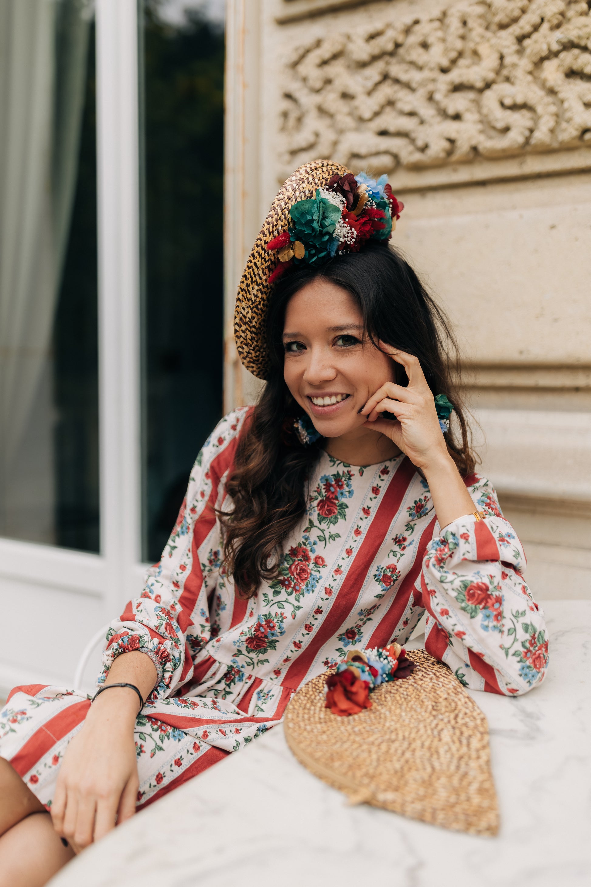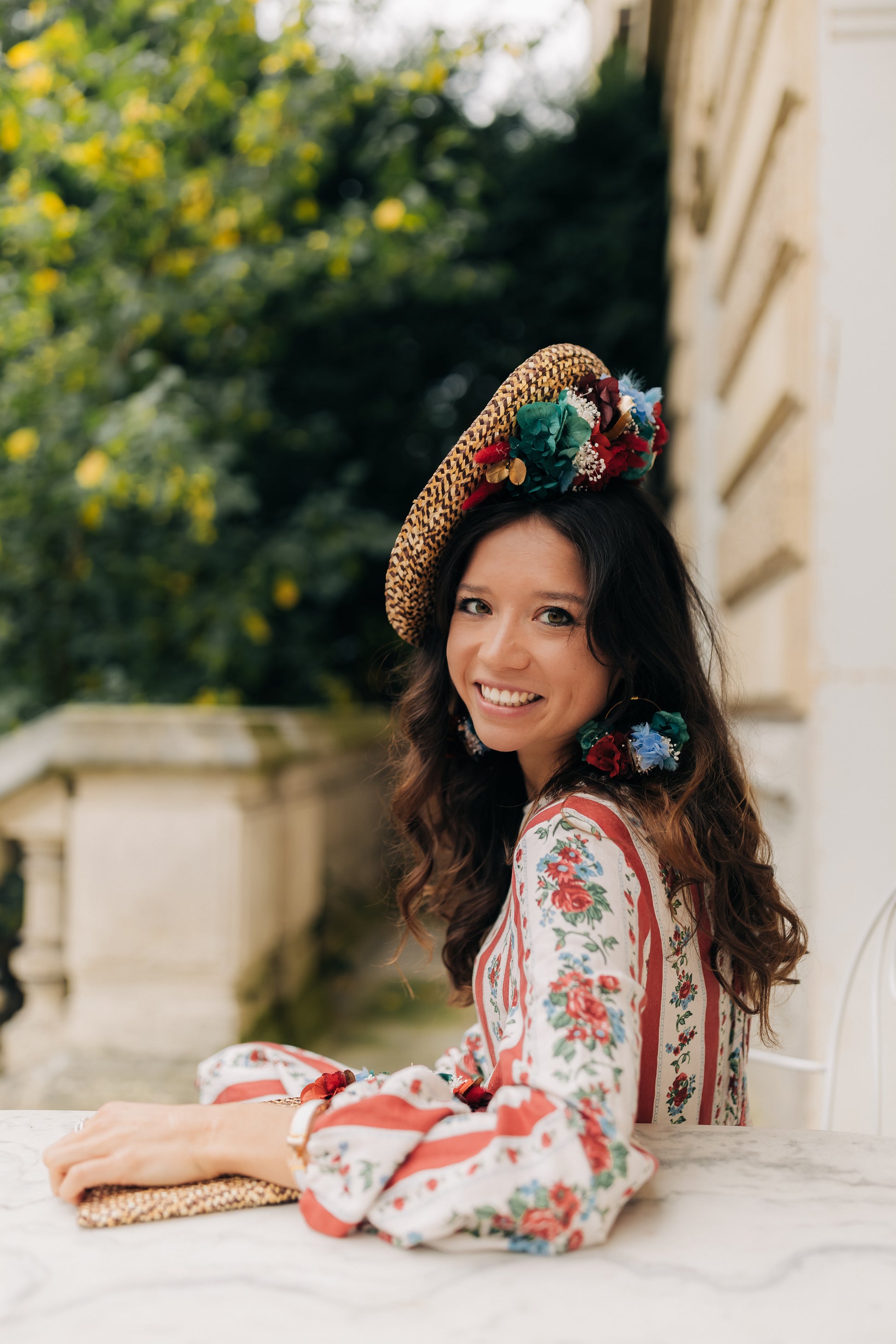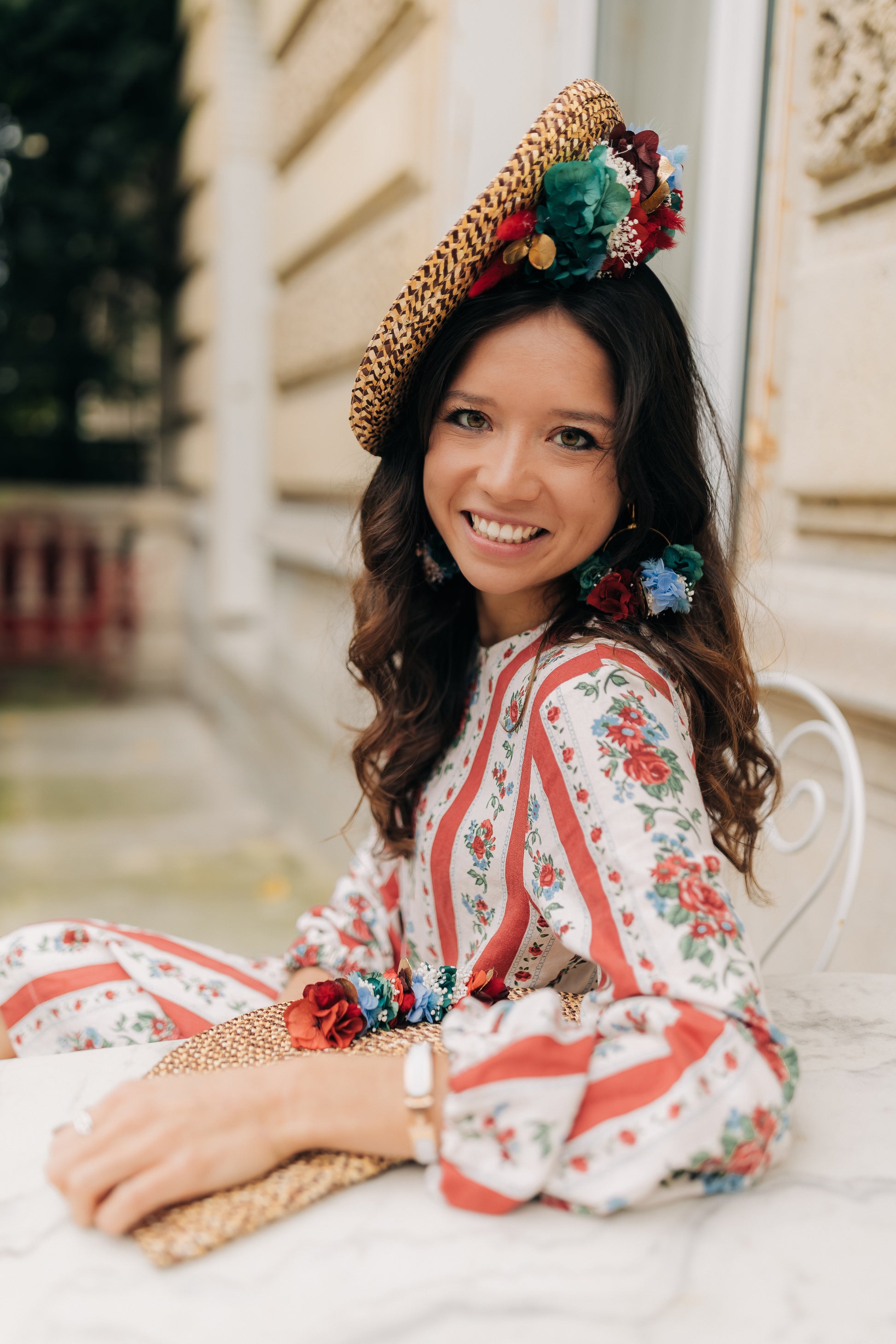Des chapeaux fleuris, aux couleurs pastel inspirées des affiches de Mucha.