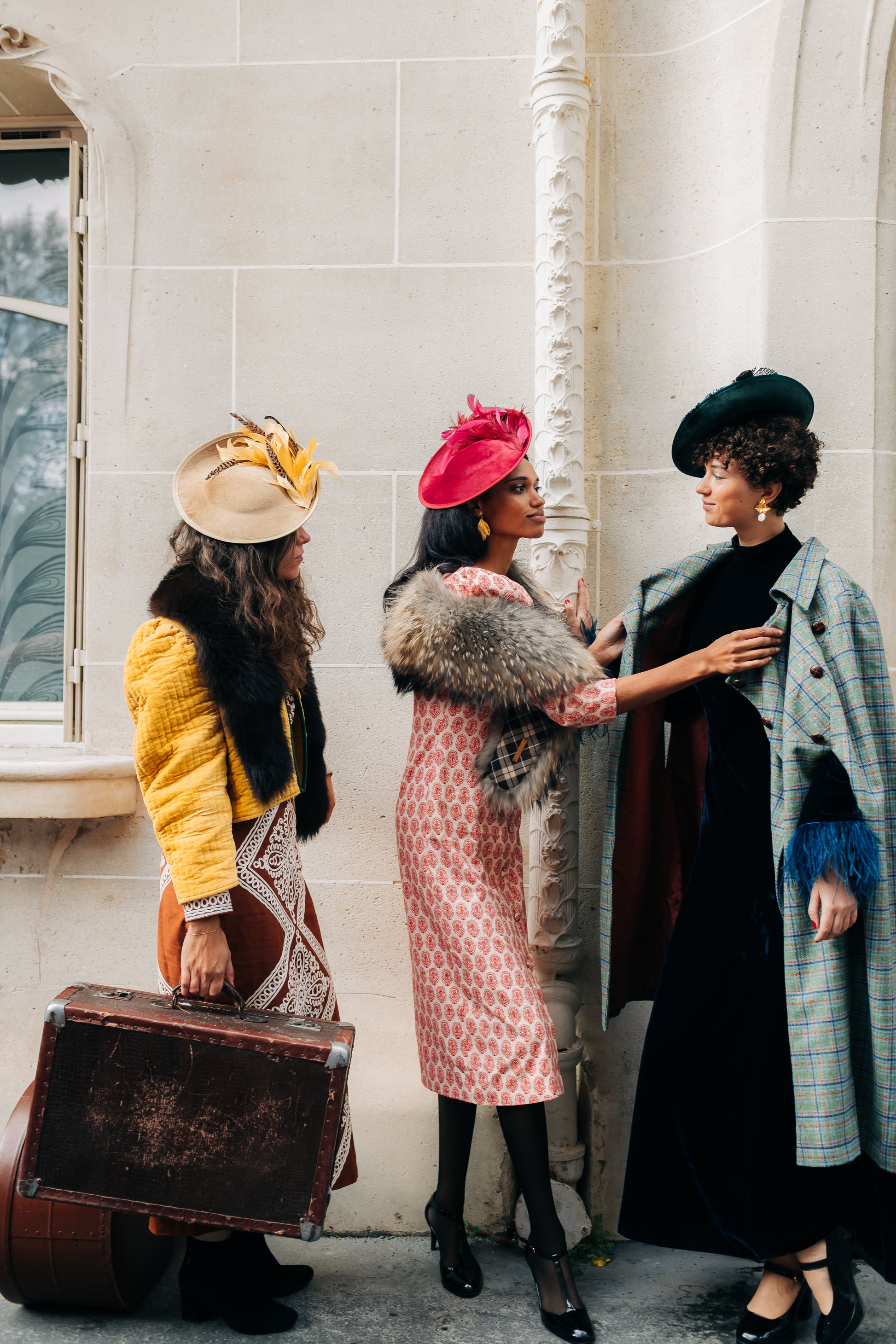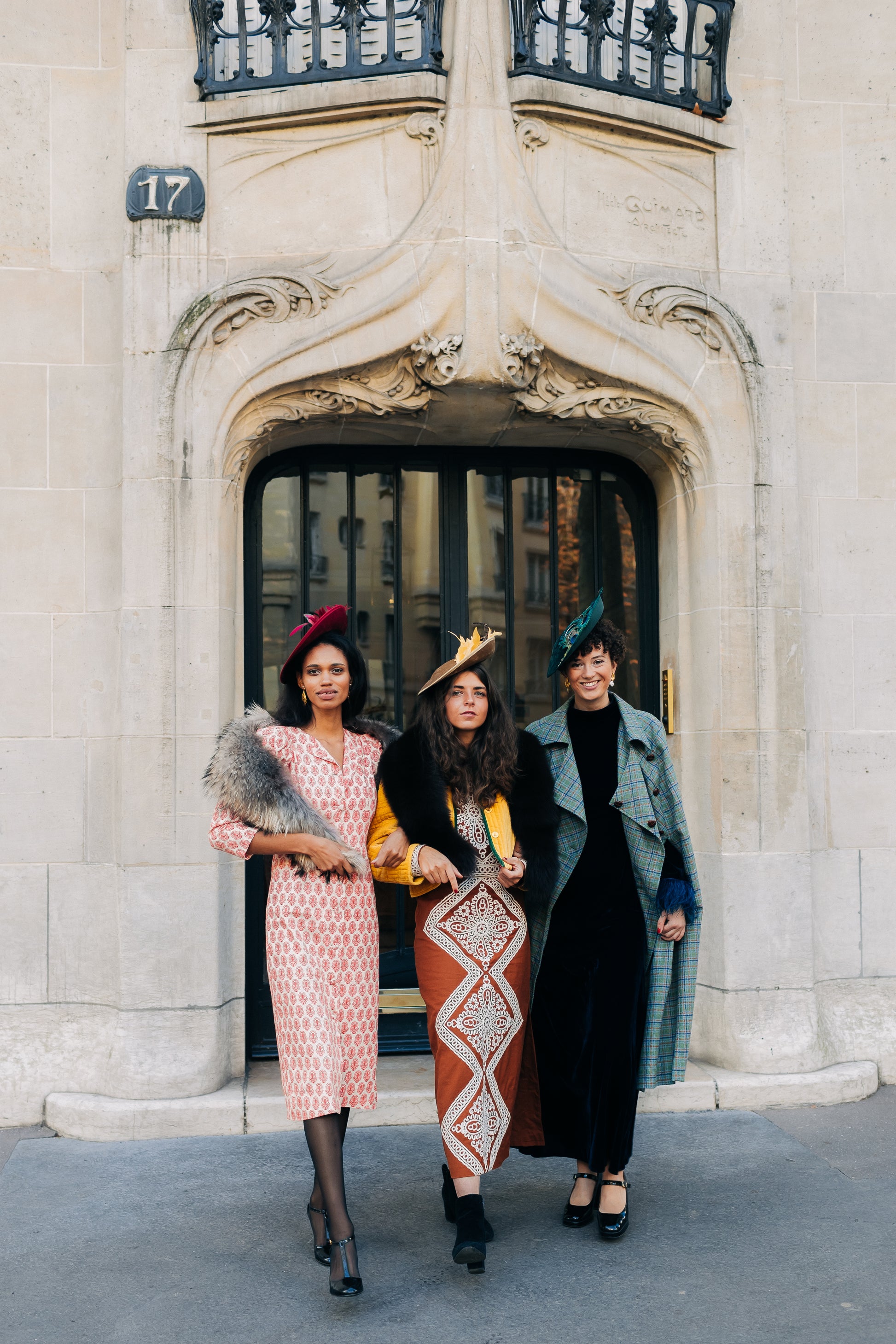Des bibis en velours ornés de plumes, comme un écho aux bals du Moulin Rouge ou des Folies Bergère.