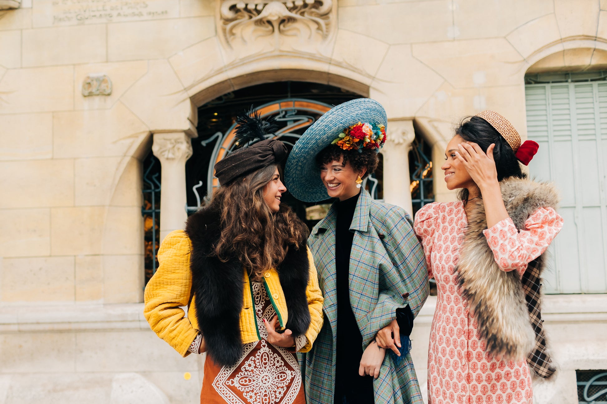 Des bibis en velours ornés de plumes, comme un écho aux bals du Moulin Rouge ou des Folies Bergère.