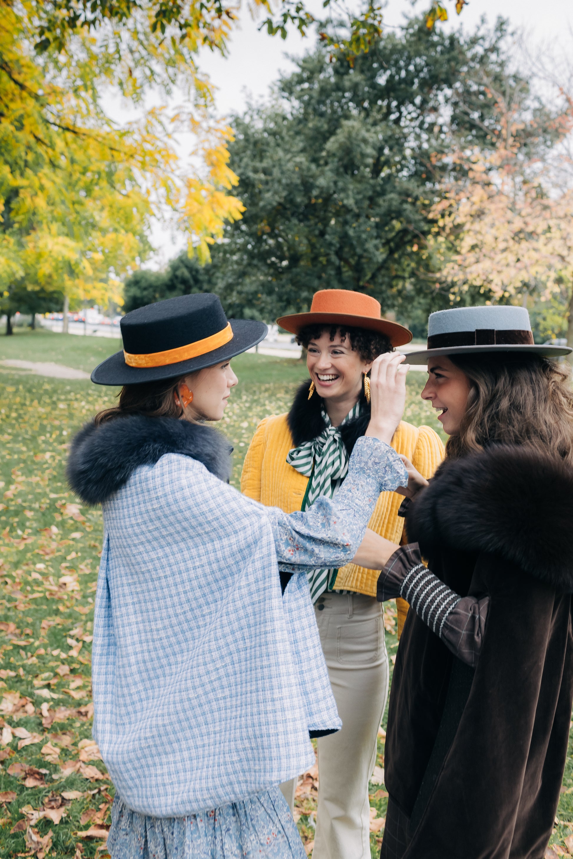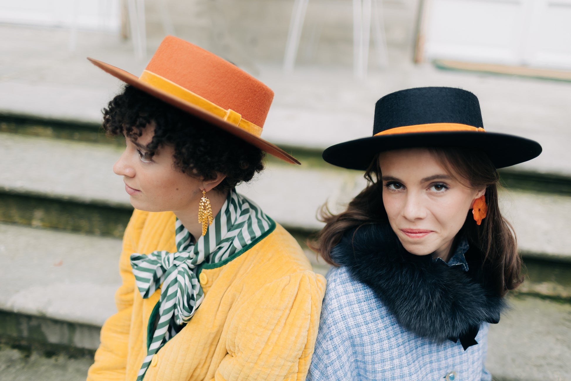 Des bibis en velours ornés de plumes, comme un écho aux bals du Moulin Rouge ou des Folies Bergère.