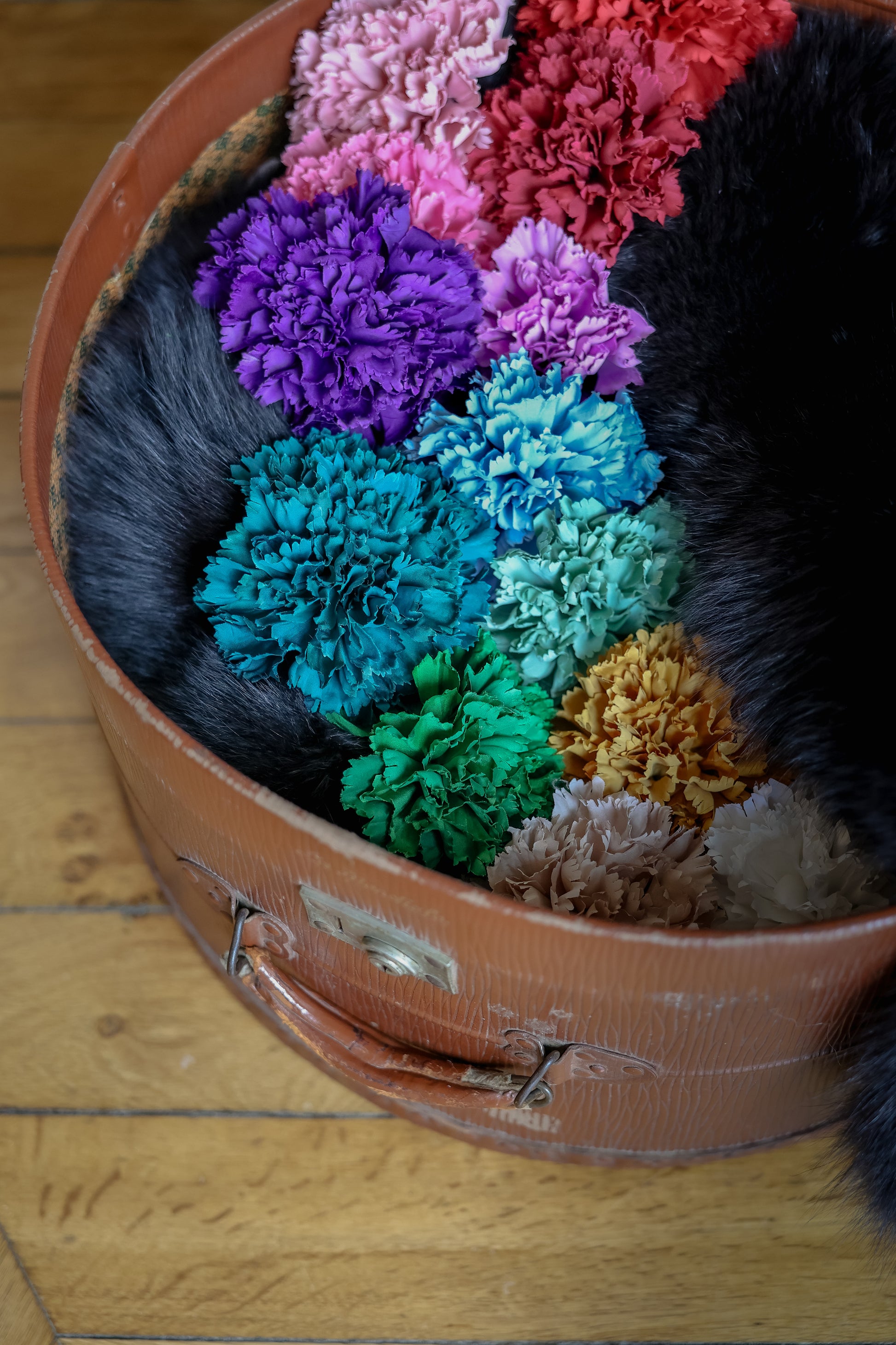 Avant de porter votre création, laissez-la respirer dans sa boîte ouverte : cela permettra aux fleurs de se détendre et de retrouver leur volume.
