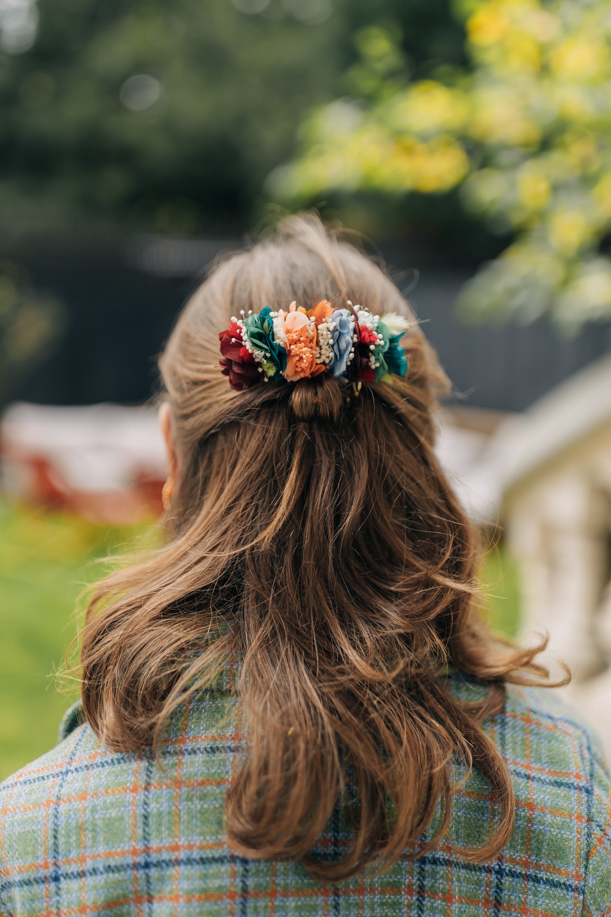 En raison de la nature unique et artisanale de chaque pièce, les peignes, réalisés à partir de véritables fleurs stabilisées, peuvent présenter des variations subtiles par rapport à la photo. Chaque fleur étant un élément naturel, ses formes et couleurs peuvent très légèrement différer, rendant chaque bijou véritablement unique. Nous nous assurons toutefois que chaque création reste le plus fidèle à l'esprit et à l'élégance du modèle présenté.
