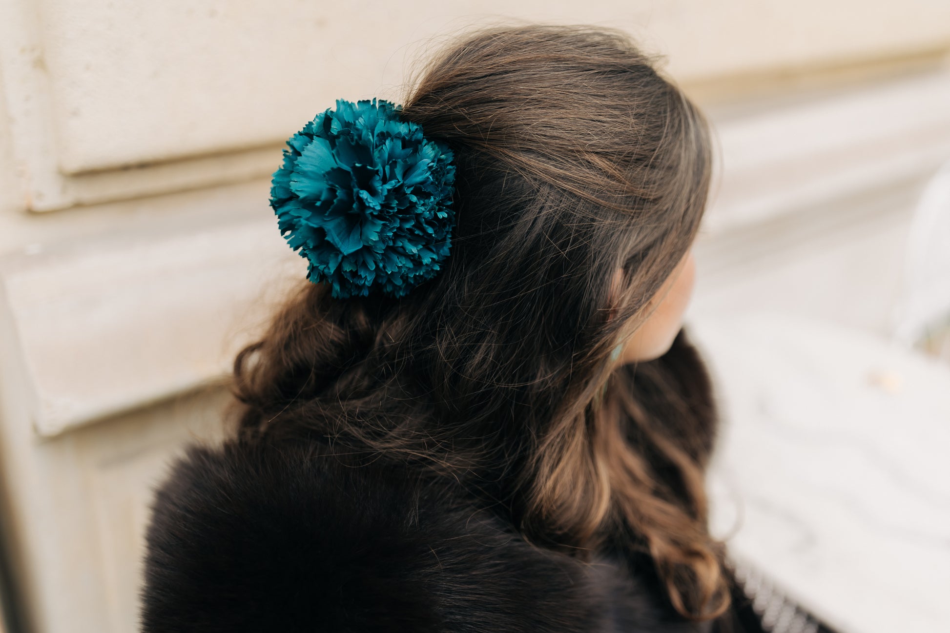 Avant de porter votre création, laissez-la respirer dans sa boîte ouverte : cela permettra aux fleurs de se détendre et de retrouver leur volume.