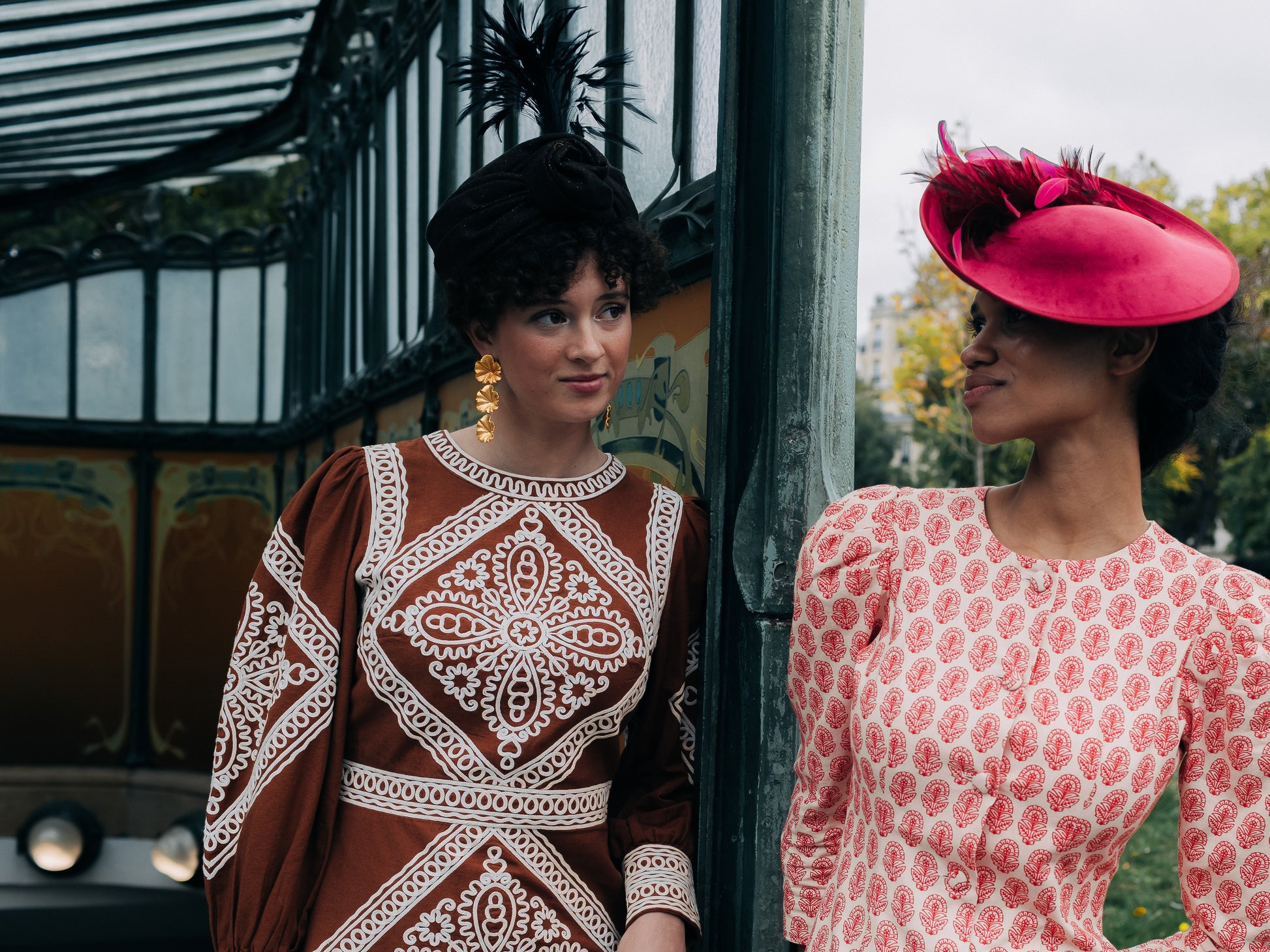 Des bibis en velours ornés de plumes, comme un écho aux bals du Moulin Rouge ou des Folies Bergère.